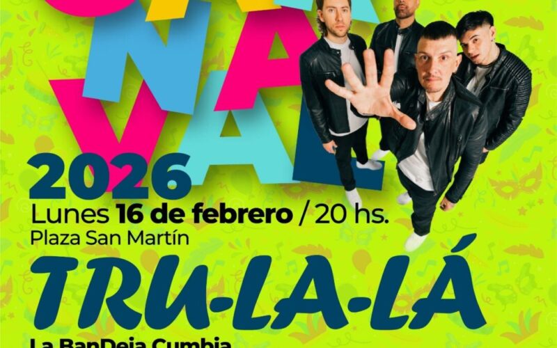 Sociedad BAILE DE CARNAVAL EN PLAZA SAN MARTÍN EL LUNES 16 CON EL CIERRE A CARGO DE LA RECONOCIDA BANDA CORDOBESA TRU LA LÁ Posted on10 febrero, 2026