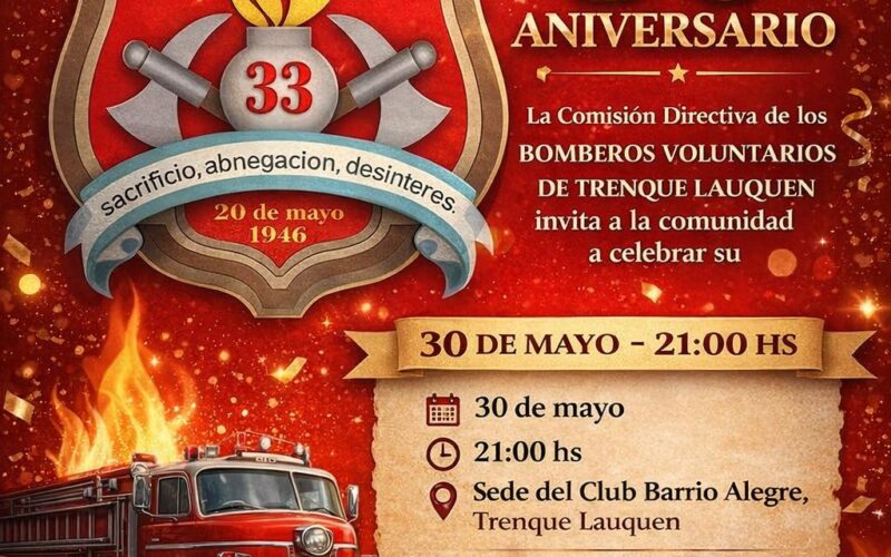 Sociedad BOMBEROS VOLUNTARIOS DE TRENQUE LAUQUEN CELEBRARÁ SUS 80 AÑOS CON UNA CENA-SHOW ABIERTA A LA COMUNIDAD Posted on18 abril, 202618 abril, 2026