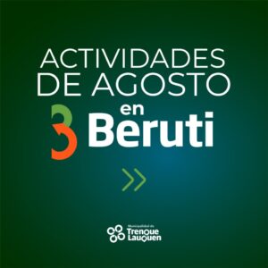 La localidad de Beruti comenzó a festejar su 134º aniversario, a cumplirse el 25 de agosto próximo, con un amplio programa de actividades que se irán desarrollando durante todo el mes, y que comenzaron el pasado fin de semana con actividades deportivas y culturales, y continuarán este sábado (10) a las 9.30 con un Seven de Fútbol en la cancha del Club Giat y luego por la tarde, de 17 a 19, con la Muestra “Entre Cantos y Plumas”, fotografías de Pedro Cabrera, en el Centro de Jubilados.