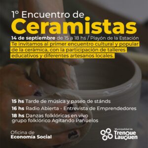 El próximo sábado a partir de las 15hs. en el Playón de la Estación tendrá lugar el 1º Encuentro de Ceramistas, organizado por la oficina de Economía Social, que depende del área de Producción y Desarrollo Económico del municipio, que conduce Germán Lauro.