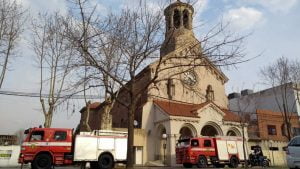 Los Bomberos Voluntarios de Trenque Lauquen combatieron un incendio de pastizales en pleno centro de la ciudad, en el terreno baldío lindero al templo de la Parroquia “Nuestra Señora de los Dolores”, frente a la plaza principal.