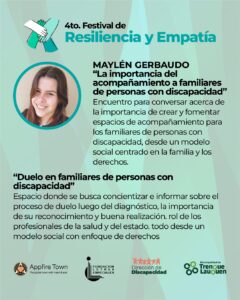 Maylén Gerbaudo brindará la charla “La importancia del acompañamiento a familiares de personas con discapacidad”, un encuentro para conversar acerca de la importancia de crear y fomentar espacios de acompañamiento para los familiares de personas con discapacidad, desde un modelo social centrado en la familia y los derechos.