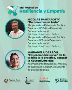 “Se viene el 4º Festival de Resiliencia y Empatía, arrancamos con un foro el sábado 23 en el Polo Científico Tecnológico donde habrá una serie de charlas y disertaciones muy interesantes, y donde estará el área de Discapacidad con los equipos del Centro de Día y el Hogar Cumen Che, y va a continuar el domingo 24 en el Club Monumental con la presentación de agrupaciones y bandas locales”, comentó la directora de la oficina para Personas con Discapacidad del municipio, Ana Etchepare.