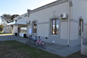 También se colocó en el frente una cartelería corpórea nueva, que incluye el nombre y el logo de la localidad, fabricada en un material que simplifica el mantenimiento y evita el deterioro de la mampostería dándole un aspecto más sobrio y delicado que realza el valor del edificio.