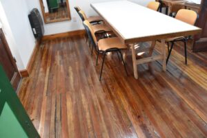 Al mismo tiempo, se restauraron los pisos de pinotea, lijándolos a máquina, y luego laqueándolos para darle una mejor terminación y garantizar mayor durabilidad.