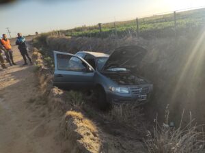 Más tarde, también en horas de la mañana, un auto se cayó en un canal de un camino de tierra con un ocupante en su interior, en una de bajada de la ruta 33.