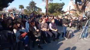“En un día como hoy, un grupo de patriotas se reunieron en la provincia de Tucumán y bajo la presidencia del representante por San Juan, Francisco N. Laprida, el Congreso proclamó la independencia de las Provincias Unidas de Sudamérica, declarando que era voluntad unánime indubitable de estas provincias romper los violentos vínculos que las ligaban a los reyes de España, recuperar los derechos de que fueron despojados, e independizarse del rey Fernando VII”, se recordó en el inicio del acto que fue presidido por las banderas de ceremonia de la Escuela Municipal, que hoy cumple 88 años, y del grupo Scout Conrado Villegas, que también celebra el aniversario de su creación.