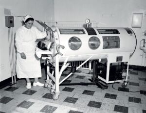 Después se importó el pulmotor, una máquina en forma de tubo, donde se colocaba al enfermo. Funcionaba mediante un fuelle que se accionaba por un motor que auxiliaba al paciente a respirar, es decir, cumpliendo la función de los pulmones. En Trenque Lauquen, una colecta popular logró reunir los fondos para comprar uno, que fue exhibido a su llegada a la ciudad en un comercio de la avenida Villegas. ¿Dónde estará?