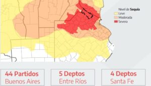 De acuerdo al último reporte de la Mesa Nacional de Monitoreo de Sequías, existen en el país 140 millones de hectáreas afectadas por la falta de agua, de las cuales más de 7 millones, catalogadas bajo la categoría de “afectación severa”, se encuentran concentradas en la denominada zona núcleo agrícola.