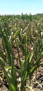 Para el maíz ese período crítico es alrededor de la floración. Cuando la humedad disponible es insuficiente, se resiente la cantidad de granos formados y esto es irreversible. Pero este año el problema fue anterior, ya que la sequía lo afectó en la etapa previa, perdiéndose área foliar, es decir, las hojas se secaron por el déficit hídrico.