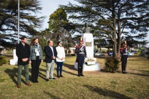 En homenaje a su destacada personalidad y su aporte a la Patria fue colocada una ofrenda floral en el busto que lo recuerda y luego se realizó un minuto de silencio para la reflexión sobre nuestro emblemático prócer. La ofrenda floral fue colocada por el intendente, el diputado Miranda, la titular del HCD, Marta Bathis y la presidenta de la Sociedad Italiana de Trenque Lauquen y titular de la Corresponsalía, Carla Ricciardi.