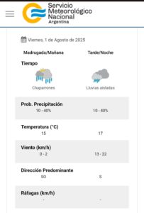 El viento por su parte ya comenzó a sentirse desde principio de esta semana y durante gran parte del día de hoy persistirá. Es que estamos en la puerta de agosto, el mes de los vientos.