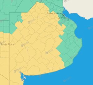 Asimismo, también alcanza a Adolfo Gonzales Chaves, Lobería, Necochea, San Cayetano, Tres Arroyos, General La Madrid, Laprida, Olavarría, Benito Juárez, Tandil, Azul, Rauch y Tapalqué.