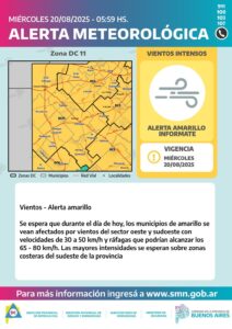 Sobre las Zonas *DC 7 y 12* los vientos se mantendrán intensos hasta la noche inclusive.