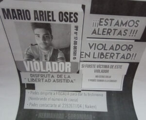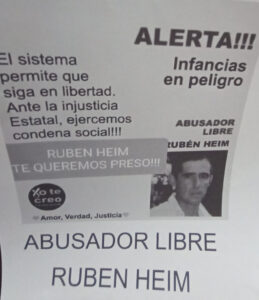 Se trata de Ruben Heim y de Mario Ariel Oses. En este último caso se menciona que “disfruta de libertad asistida”, cita el número de expediente judicial, se invita a dirigirse a Fiscalía “para dar tu testimonio”, y se brinda un número de contacto para apoyar y acompañar a posibles otras víctimas.