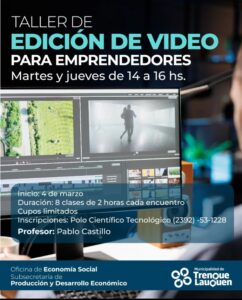 Se está dictando el martes y jueves de 14 a 16. Tiene una duración de ocho clases de dos horas cada encuentro. Cupos limitados. Es un taller que se puso en marcha en articulación con la Oficina de Economía Social, que depende de la subsecretaría de Producción y Desarrollo Económico.
