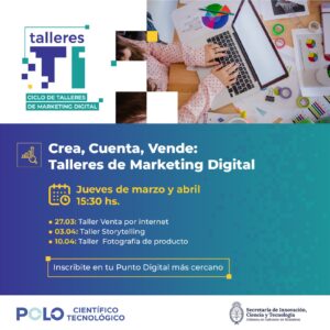 Crea, Cuenta, Vende. Se dicta los jueves de marzo y abril a partir de las 15.30. Las fechas son: