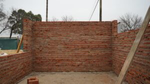 La obra se está ejecutando con sistema constructivo tradicional, incluyendo fundaciones de zapata corrida, mampostería de ladrillo común, solado con contrapiso de hormigón, carpeta niveladora y piso de porcelanato. Las aberturas serán de aluminio negro con contramarco y vidrio doble con cámara de aire.