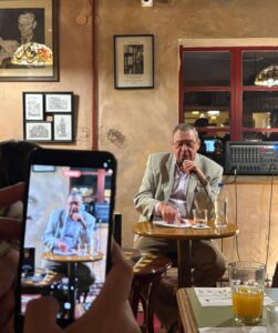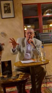 Resumió el desarrollo de la obra, con sus personajes y escenarios, y al final se generó un vivo debate entre los presentes, despertadas en el interés por algunas secuencias del libro, y acerca del género de la novela policial. Posteriormente firmó ejemplares, a solicitud de sus compradores.