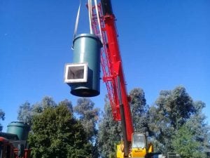 El horno pirolítico de última generación que adquirió la Comuna para incinerar los residuos patogénicos de Trenque Lauquen y otros 6 distritos llegó hoy al PROLIM, cerca de las 16:30, y fue descargado del camión con una grúa de gran porte ante la presencia de funcionarios del área y el propio intendente Miguel Fernández.