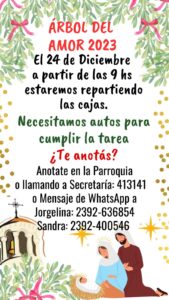 La Parroquia Nuestra Señora de los Dolores está organizando el tradicional “Árbol del Amor” para ayudar a las familias más necesitadas en la celebración de Noche Buena y Navidad con una caja de alimentos.