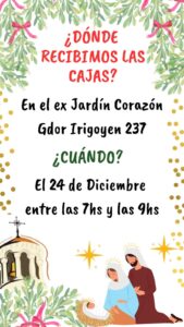 Las cajas se recibirán el mismo 24 de diciembre entre las 7 de la mañana y 9 de la mañana en el ex Jardín Corazón, Gobernador Irigoyen 237.