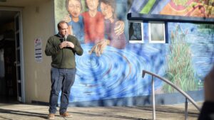 Luego, Mercedes Correa Urquiza, Isaías Mata y Néstor Martín, en representación de los muralistas que trabajaron en la obra, explicaron el sentido de la misma, destacaron que todos pusieron un granito de arena para que se pudiera llevar a cabo destacando el rol de la Escuela de Muralismo y Arte Comunitario en esta interacción con la comunidad a través de los murales, iniciativa que se ha consolidado a partir de la declaración de Trenque Lauquen como Capital Provincial de los Murales.
