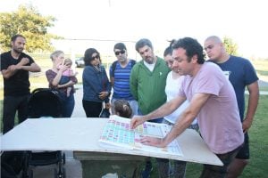 Rabasa marcó en un plano los cuatro lugares posibles para colocar los Juegos de Plaza que construyó el Municipio y un container de 12 x 2,40 metros debidamente acondicionado para funcionar desde enero próximo como Espacio Comunitario, un pedido impulsado por el Presupuesto Participativo.