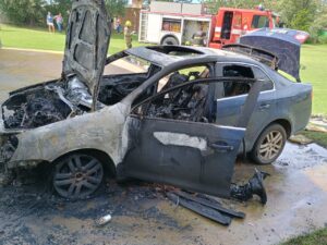 Al arribo de la dotación se encuentra el propietario aguardando la llegada, se realiza inspección ocular y se observa incendio de vehículo Volkswagen Vento.