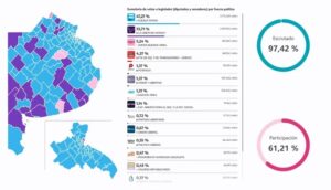 En la poderosa Tercera sección hay en juego 18 bancas de diputados y el piso a perforar es del 5,55%. Fuerza Patria arrasó con 53,9% y llegó a obtener diez bancas. Los libertarios con 28,4% se llevaron seis bancas y la izquierda con 5,6% sumará dos legisladores.