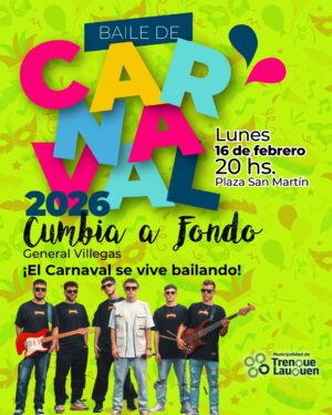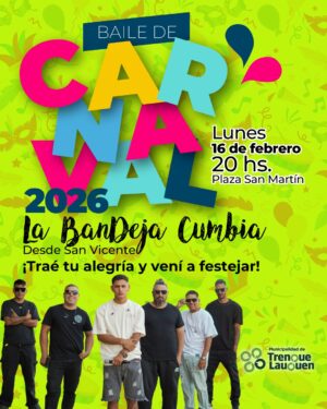 La comunidad de Trenque Lauquen y la región podrá disfrutar el próximo lunes (16) del Baile de Carnaval, a partir de las 20, en la Plaza San Martín, con una propuesta abierta a toda la familia y con entrada libre y gratuita.