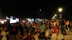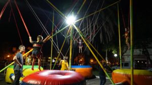 Juegos para los chicos/as, puestos gastronómicos, cantina, artesanos con sus propuestas sobre la plaza principal, otras atracciones y la infaltable espuma fueron parte de una noche donde el público cantó y bailó al ritmo de la música tropical, en el escenario ubicado en la esquina de Villegas y Oro.