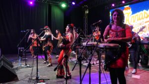 como Topadora”, una banda que llegó desde Villa María, Córdoba, liderado por mujeres y con 12 integrantes en el escenario.