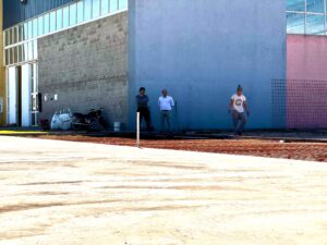 En el Playón Multideportivo, cuya obra en marcha fue recorrida por el intendente Francisco Recoulat, previamente se había completado el trabajo de movimiento de suelo, compactación, y colocación y nivelación de tosca.
