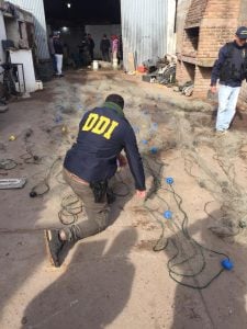 También, al ingresar a un galpón, los agentes se encontraron con una filetera trucha, montada con todas las herramientas y utensilios para realizar ese tipo de faena, una cámara de frío, 34 bolsas con redes de pesca, y 7750 kilos de pejerrey listo para ser procesado colocados en 207 cajones. En ese galpón también actuó la Dirección de Bromatología de Pehuajó y la Dirección de Recursos Naturales de la Provincia desde donde se labró una infracción por pesca clandestina.
