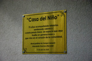 La misma dice lo siguiente: Casa del Niño/75 años. 75 años acompañando infancias, sembrando valores y construyendo futuro. Un espacio que dejó huella en generaciones y que vive en el corazón de la comunidad. /Municipalidad de Trenque Lauquen /Intendente Francisco Recoulat/ 13 de abril de 2026.