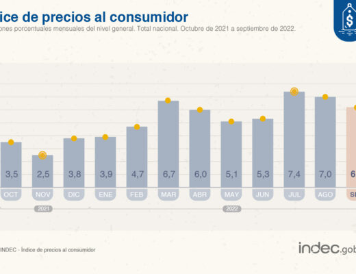 Economía Posted on14 octubre, 2022 LA INFLACIÓN DE SEPTIEMBRE FUE DE 6,2% Y ACUMULÓ UN 83% EN LOS ÚLTIMOS 12 MESES