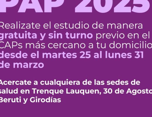 Sociedad Posted on19 marzo, 2025 JORNADAS PAP 2025: DESDE EL PRÓXIMO MARTES Y HASTA EL LUNES 31 DE MARZO SE REALIZARÁ EL ESTUDIO EN FORMA GRATUITA Y SIN TURNO PREVIO EN TODO EL DISTRITO