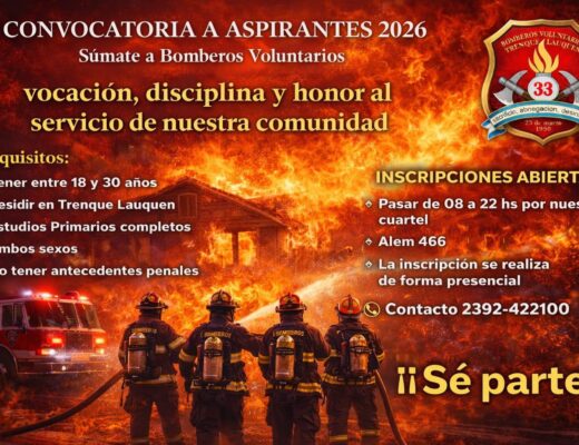 Sociedad Posted on3 marzo, 2026 ¡SE BUSCAN HÉROES! BOMBEROS VOLUNTARIOS TRENQUE LAUQUEN ABREN CONVOCATORIA 2026 EN TRENQUE LAUQUEN