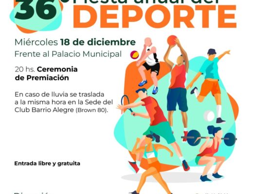 Sociedad Posted on9 diciembre, 2024 LA 36º EDICIÓN DE LA FIESTA DEL DEPORTE TENDRÁ LUGAR EL MIÉRCOLES 18 DE DICIEMBRE FRENTE AL PALACIO MUNICIPAL