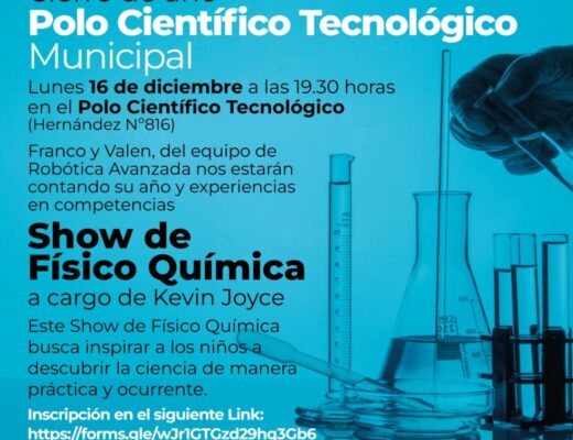 Sociedad Posted on11 diciembre, 2024 CIERRE DE AÑO EN EL POLO CIENTÍFICO TECNOLÓGICO MUNICIPAL, EL PRÓXIMO LUNES CON EL EQUIPO DE ROBÓTICA Y UN SHOW DE FÍSICO QUÍMICA