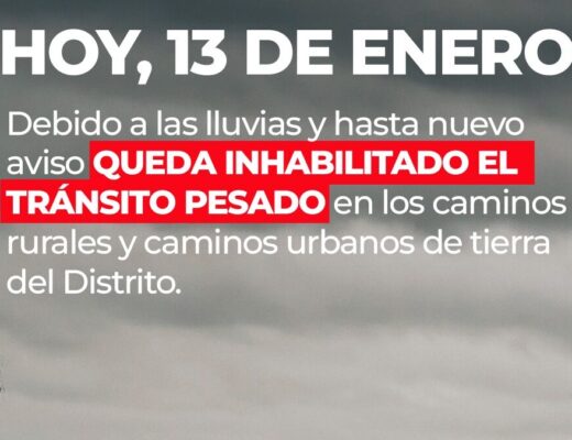 Sociedad Posted on13 enero, 2026 POR LAS LLUVIAS QUEDA INHABILITADO EL TRÁNSITO PESADO EN LOS CAMINOS RURALES Y EN LOS CAMINOS DE TIERRA URBANOS DEL DISTRITO