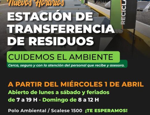 Sociedad Posted on31 marzo, 2026 LA ESTACIÓN DE TRANSFERENCIA DE RESIDUOS CAMBIA DE HORARIO A PARTIR DEL MIÉRCOLES 1º DE ABRIL