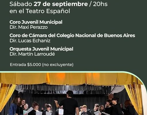 Sociedad Posted on25 septiembre, 202525 septiembre, 2025 CONCIERTO DE PRIMAVERA EN EL TEATRO, CON FORMACIONES DE LA ESCUELA DE MÚSICA Y EL CORO DE CÁMARA DEL COLEGIO NACIONAL DE BUENOS AIRES