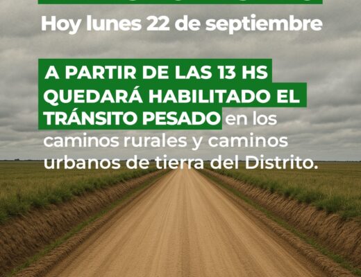 Sociedad Posted on22 septiembre, 2025 DESDE HOY A LAS 13 QUEDARÁ HABILITADO EL TRÁNSITO PESADO POR LOS CAMINOS RURALES Y CAMINOS DE TIERRA URBANOS DEL DISTRITO