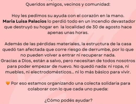 Sociedad Posted on7 agosto, 20257 agosto, 2025 DESOLADOR INCENDIO EN 30 DE AGOSTO: UNA FAMILIA PERDIÓ TODO