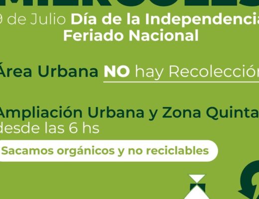Sociedad Posted on8 julio, 2025 POR EL FERIADO NACIONAL, MAÑANA NO HABRÁ RECOLECCIÓN DE RESIDUOS EN EL ÁREA URBANA, PERO SÍ SE HARÁ EN EL SECTOR QUINTAS Y LA AMPLIACIÓN URBANA