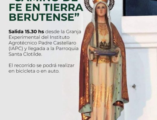 Sociedad Posted on5 junio, 2025 “CAMINO DE FE EN TIERRA BERUTENSE”, ESTE SÁBADO (7) EN EL MES ANIVERSARIO DE LA PATRONA DE BERUTI “SANTA CLOTILDE”