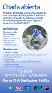 El grupo de concejales de la oposición, junto a partidos asociados, organizaron una charla virtual abierta al público para esta tarde a las 16:00 donde está prevista la disertación de miembros de Bamboo Biotech sobre el desarrollo de un test que detecta los anticuerpos generados como respuesta inmune frente al SARS-CoV-2.