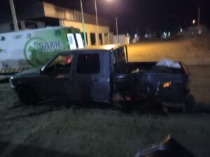 Se trata de dos camionetas, ambas Toyota Hilux, una de ellas doble cabina. A uno de los rodados se le arrancó una de las ruedas que quedó desplazada varios metros del lugar del siniestro.